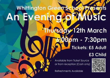 Join us at Whittington Green School for a wonderful Evening of Music on Thursday 12th March, from 6:00pm - 7:30pm.